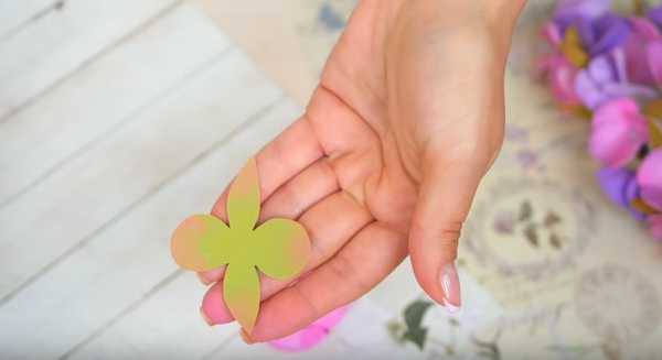 | После изготовления лепестков разного размера сделайте несколько самых маленьких заготовок, затонировав их с помощью губки и пастели. | |