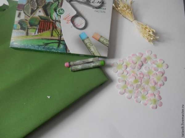 7. Тонируем заготовки розовой и зеленой пастелью.