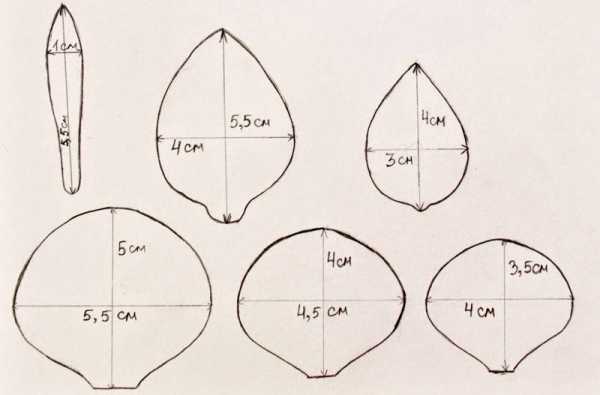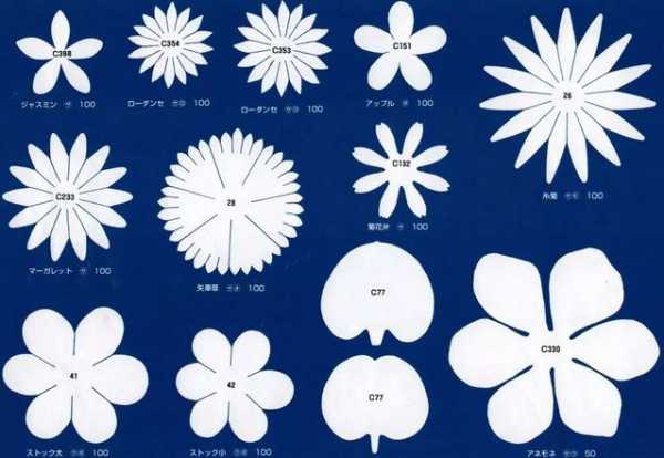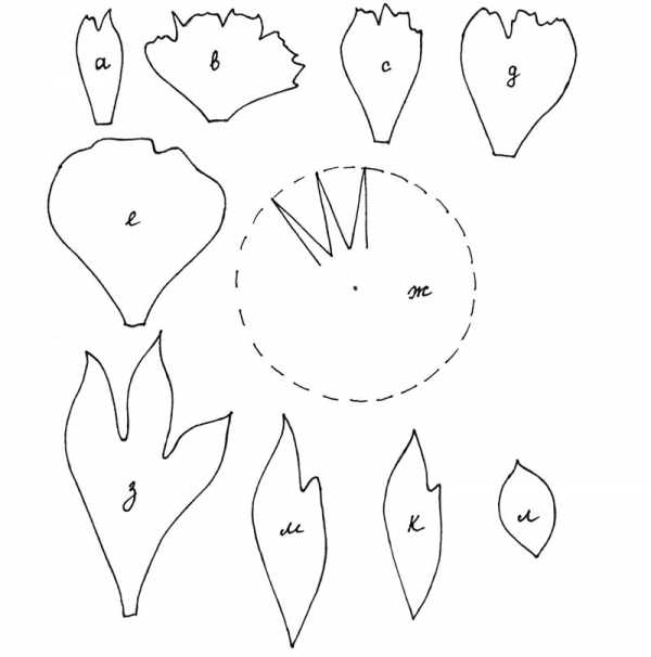 Вы можете самостоятельно изготовить шаблон, просто разобрав живой цветок на лепестки. Обратите внимание: вы не найдёте двух одинаковых форм. Для шаблона подберите тонкий картон или плотную бумагу. Просто обведите расправленные на картоне лепестки и вырежьте их по контуру. Вы можете воспользоваться готовыми шаблонами и выкройками. Просто распечатайте их на принтере.