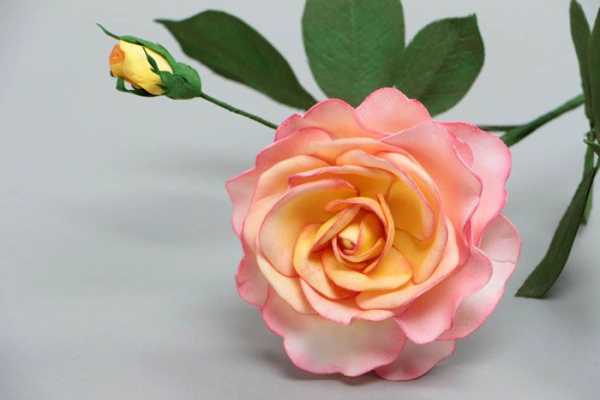 Этот цветок имеет множество сортов с разной окраской, равномерной или на кончиках лепестков. Самые популярные мастер-классы поделок из фоамиана связаны именно с бутонами розы.