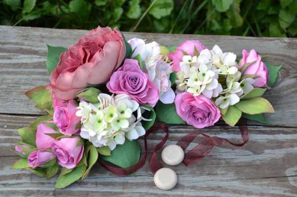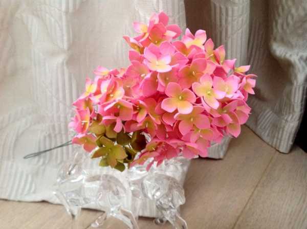 Сирень или гортензия – эти соцветия из мелких цветов шикарно смотрятся в букетах. Работа по их изготовлению – долгая и кропотливая.