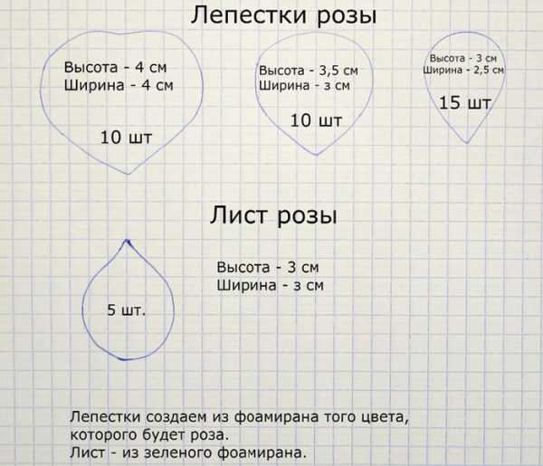 Перед тем как сделать из фоамирана розу, нужно определиться с формой цветка и подобрать подходящую схему.