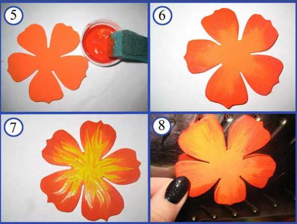 | Для придания фактурности лепесткам лист фома нужно прогладить через крепированную бумагу. Так он станет немного тоньше и получит характерный рельеф. | |