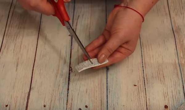 3. Сложите полоску пополам, склейте по краю, нарежьте со стороны сгиба бахрому.