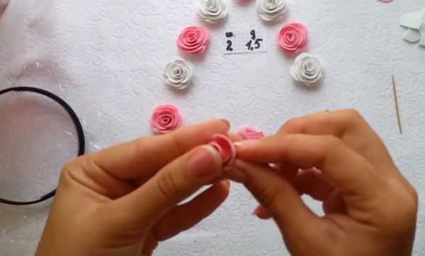 Маленькие розочки – основа для украшения небольших заколок, брошей и даже колечек. Сделать их несложно. Можно воспользоваться даже специальным дыроколом с готовой формой. Как это сделать легко и быстро – в видеосюжете:
