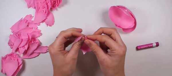10. Сделайте так же еще 2 ряда лепестков, фиксируя клеем.