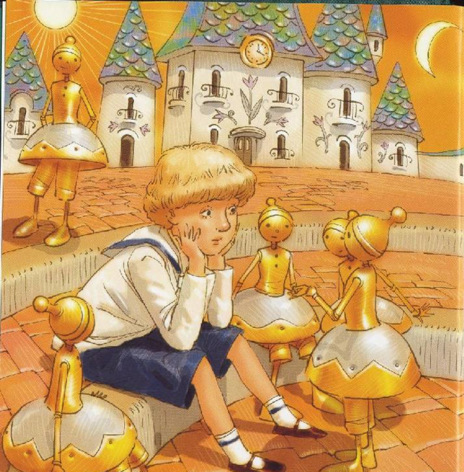 – Динь-динь-динь! Звонили колокола. – Я уже развлекался с нами! Нет, Миша, наша жизнь плоха. Правда, уроков у нас нет, но что толку? Мы бы не боялись уроков.Вся наша беда именно в том, что мы, бедняки, ни при чем; У нас нет ни книг, ни картин; нет ни папы, ни мамы; нечего делать; играть и играть целый день, а это, Миша, очень и очень скучно. Вы бы поверили? Наше черепаховое небо хорошо, золотое солнце и золотые деревья хороши; а мы, бедные, насмотрелись на них и очень устали от всего этого; от города нам ни шагу, и можно себе представить, каково это целый век, ничего не делать, сидеть в табакерке, да еще и в табакерке с музыкой.
