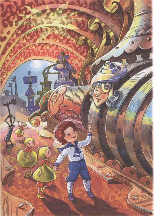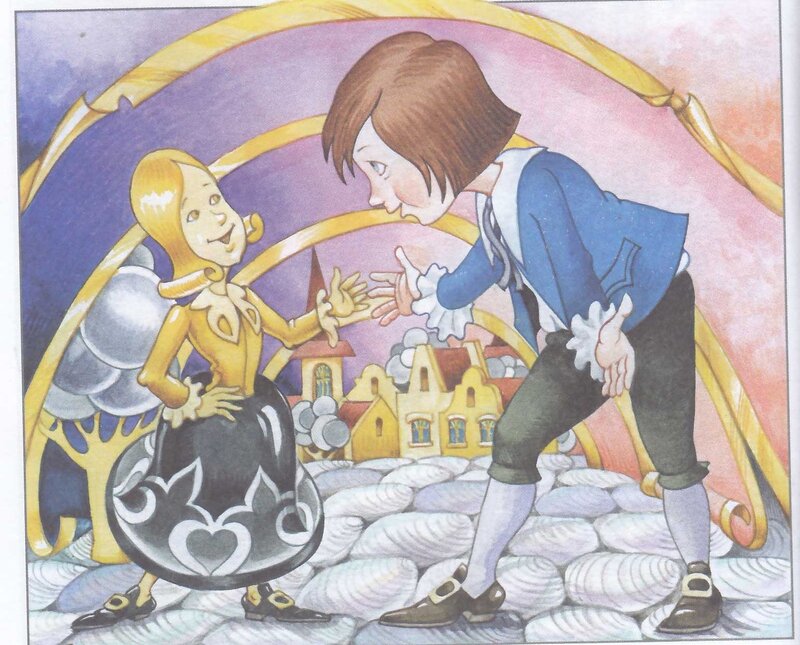 — Динь, динь, динь, — отвечал незнакомец. — Я — мальчик-колокольчик, житель этого городка. Мы слышали, что вам очень хочется побывать у нас в гостях, и потому решились просить вас сделать нам честь к нам пожаловать. Динь, динь, динь, динь, динь, динь.