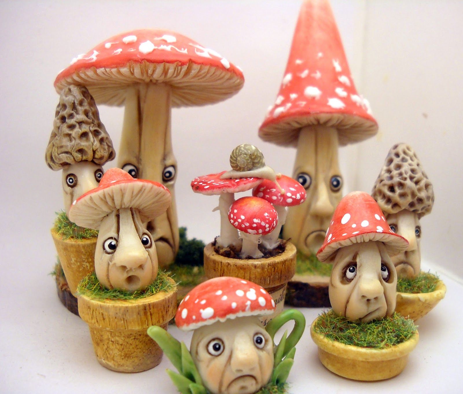 Можно изготовить грибы из пластилина, оклеить их массой папье-маше, а после высыхания, разрезав оболочку, вынуть его. Разрез впоследствии заклеивают.