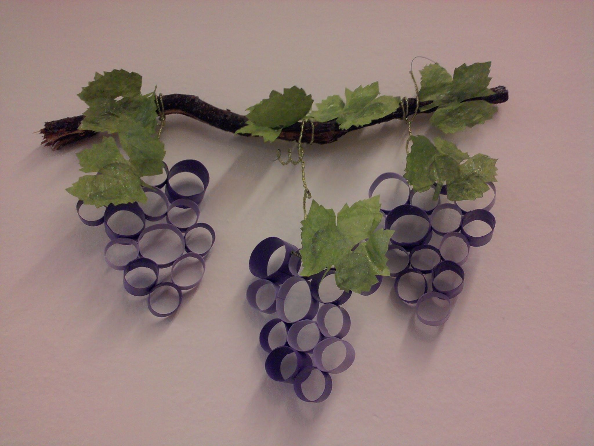 Можно сзади или сверху. Все, виноград из бумаги готов. Можно им дополнить корзинку с осенними дарами на праздник осени, декорировать помещение.