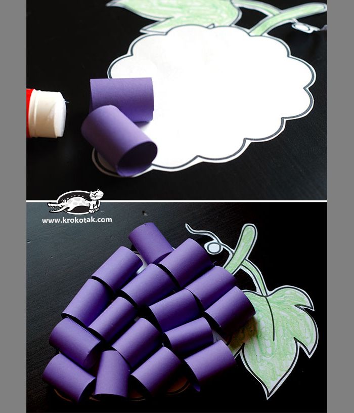 Предложите детям сделать виноград из бумаги. Такое занятие пойдёт им на пользу, ведь скручивание бумажных полос помогает развить мелкую моторику.
