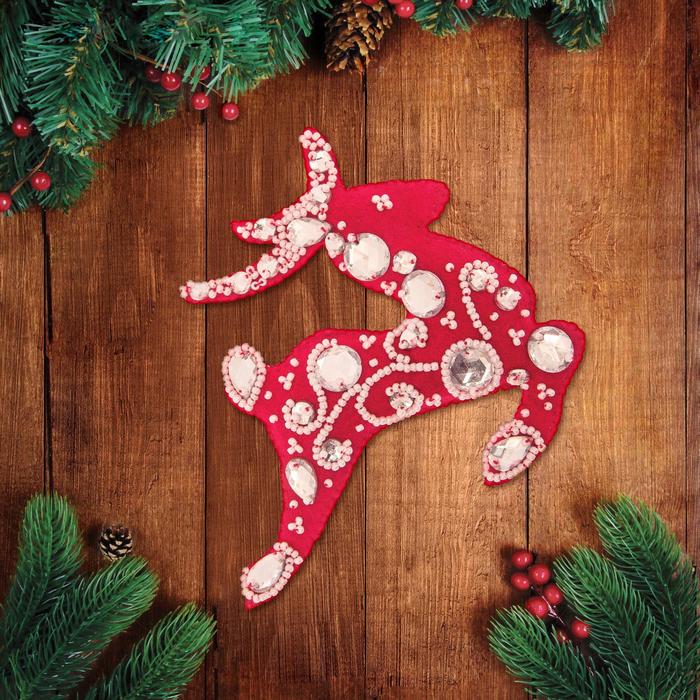 Для подобного новогоднего украшения берут и многие другие фигурки, игрушки. Можно оформить его и обычными игрушками-шарами из фетра. В конце к конструкции прикрепляют немного страз или завязывают сверху красивую ленту в виде крупного банта.