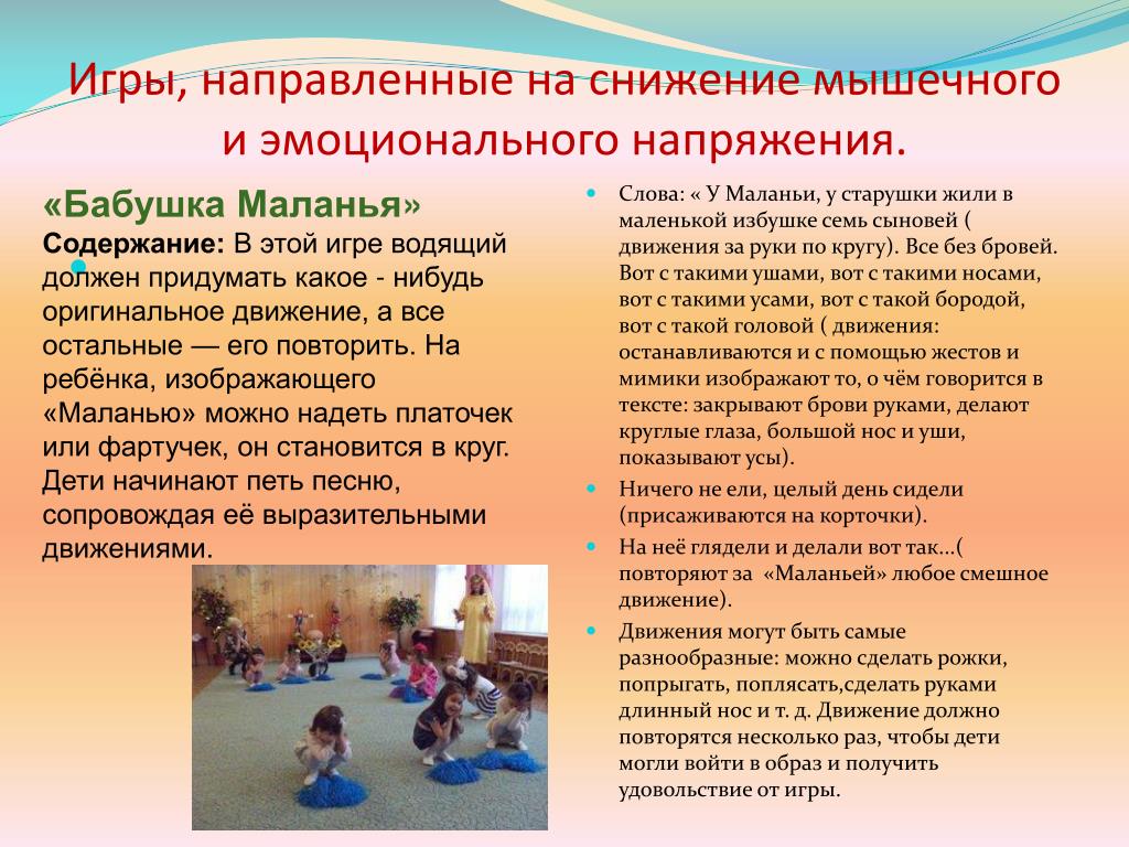 Цель: развитие коммуникативных навыков, снятие отрицательных эмоций.