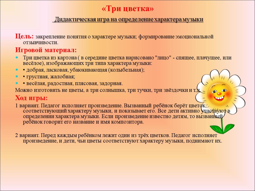 Сегодня мы познакомим Вас с дидактическими играми и различными приемами, направленными на развитие эмоциональной отзывчивости детей старшего дошкольного возраста в процессе восприятия музыки.
