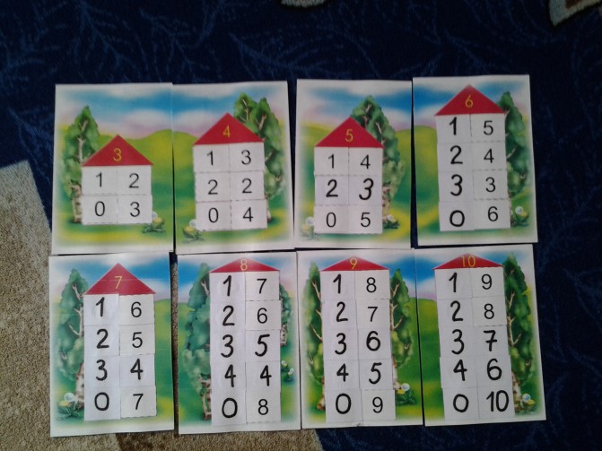 Заготовки домиков можно найти в учебниках по математике или же изготовить самостоятельно из картона.