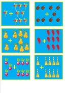 Ведущий показывает ребенку карточку с какой-либо цифрой, и ребенок должен выложить столько же предметов, изображенных на картинках, сколько указано цифрой. И наоборот. Ведущий выкладывает определенное количество предметов, а ребенок подбирает цифру.