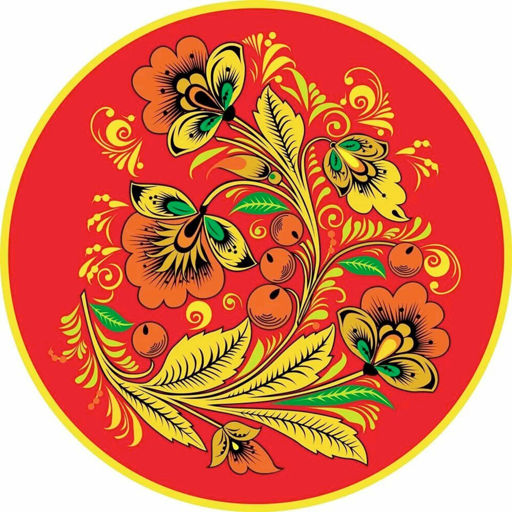 Познакомить с новым элементом- завиток. Закрепить умение рисовать ягоды (штампом), листья, травку. Учить детей составлять узор в круге. Передавать колорит росписи, сочетание цвета, фона и элементов растительного узора.