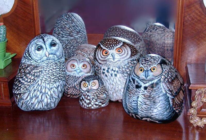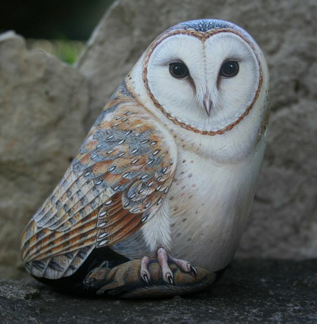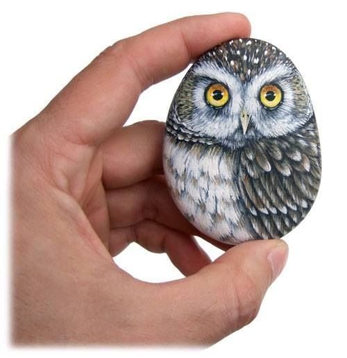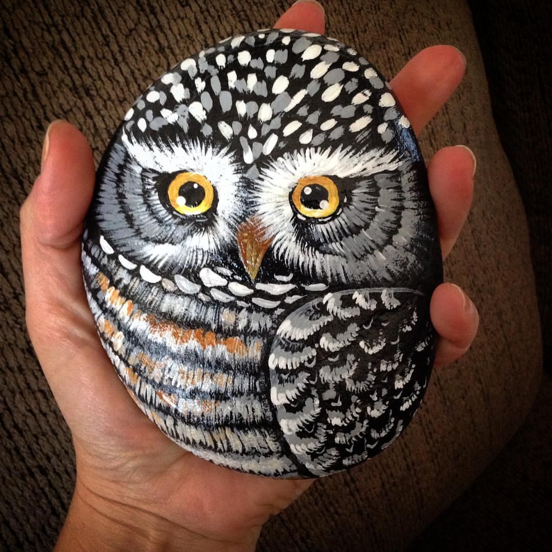 Если вы хотите знать, как сова будет выглядеть у вас на ладони, попробуйте подержать один из этих нарисованных вручную совиных камней. Этот, в частности, кажется невероятно реалистичным.Каждое перо выглядит так реалистично из-за затенения и естественных цветовых переходов, которые художник добавил.