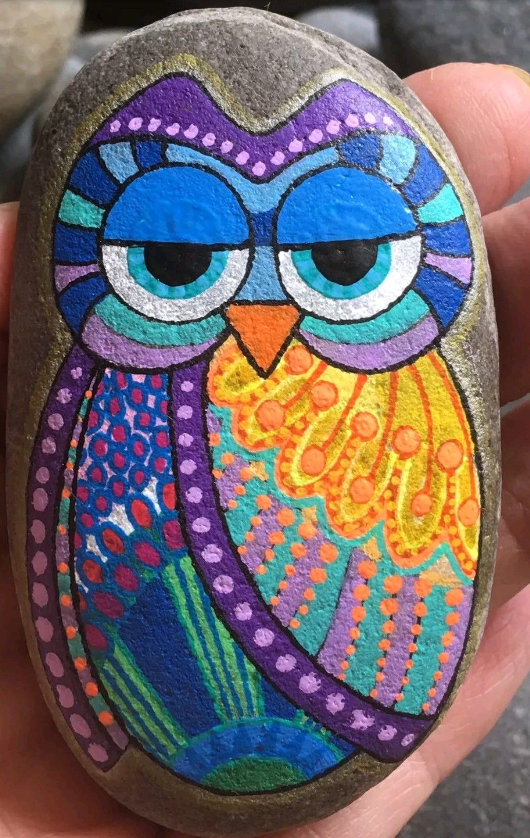 Если вы ищете варианты домашнего декора, чтобы украсить свое пространство, эта красочная абстрактная нарисованная галька совы идеально подойдет вам. Прикрытые глаза – это настроение, и вы можете подумать о том, чтобы добавить его на свое место, чтобы получить забавный элемент и приятный всплеск цвета.