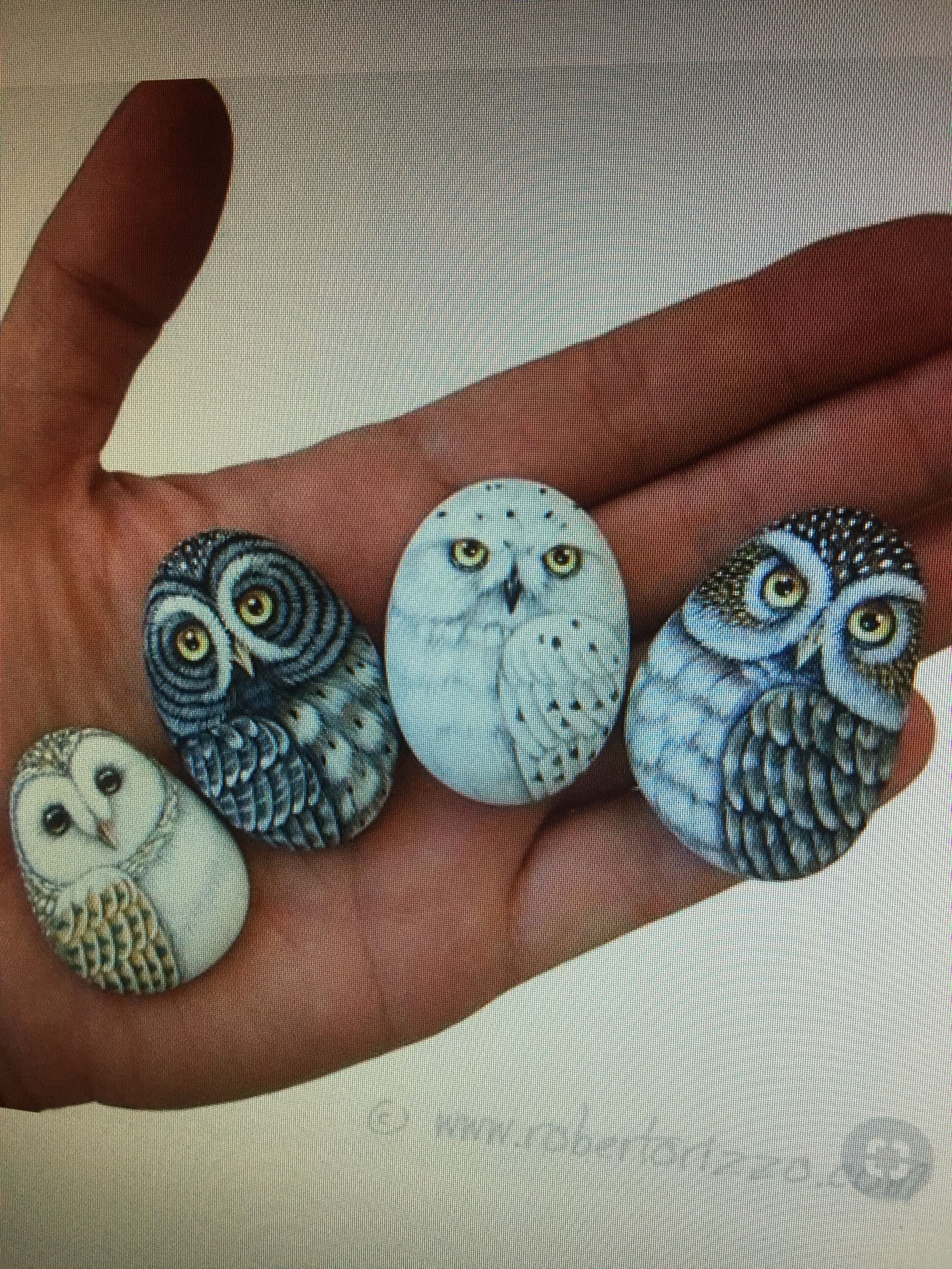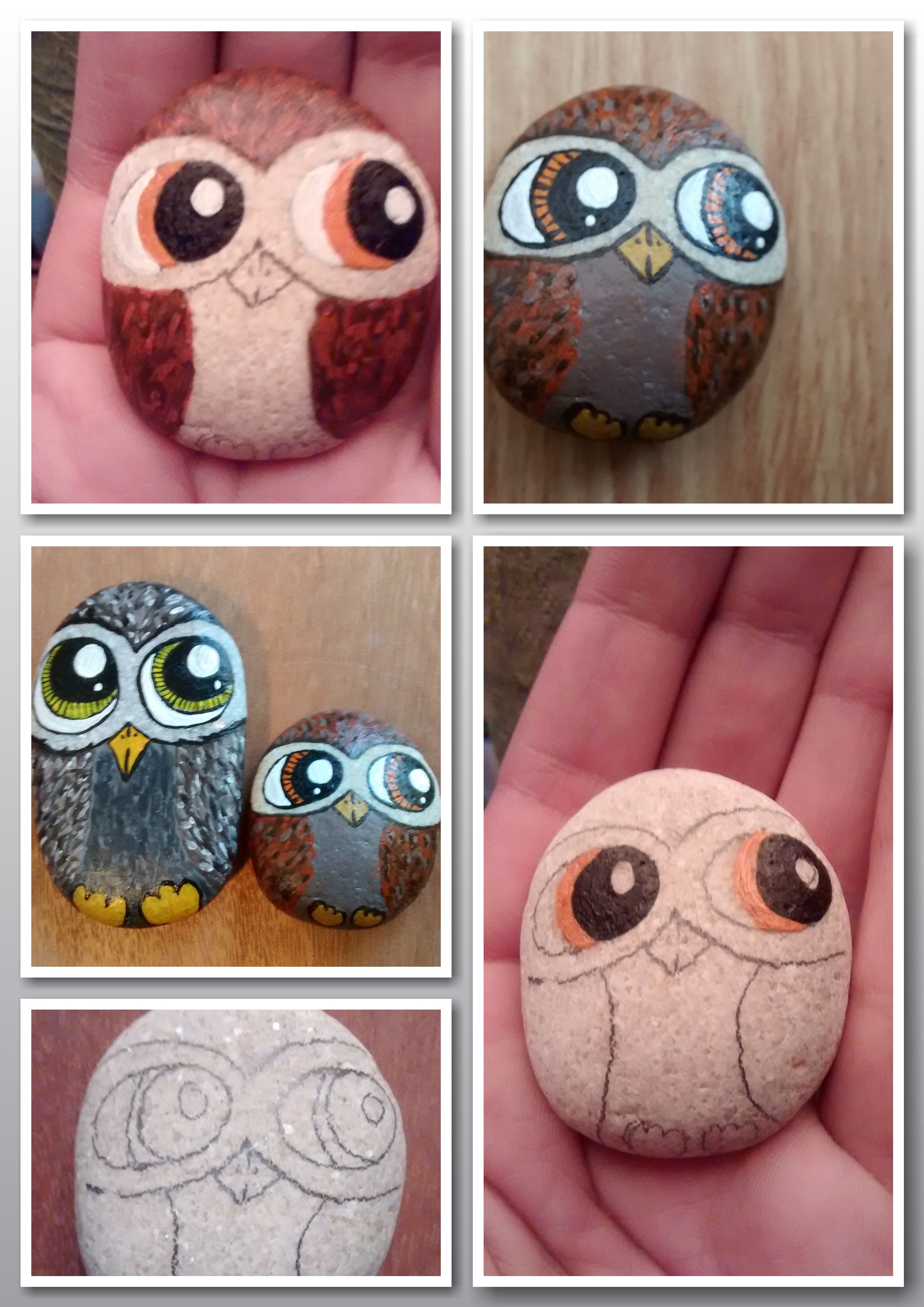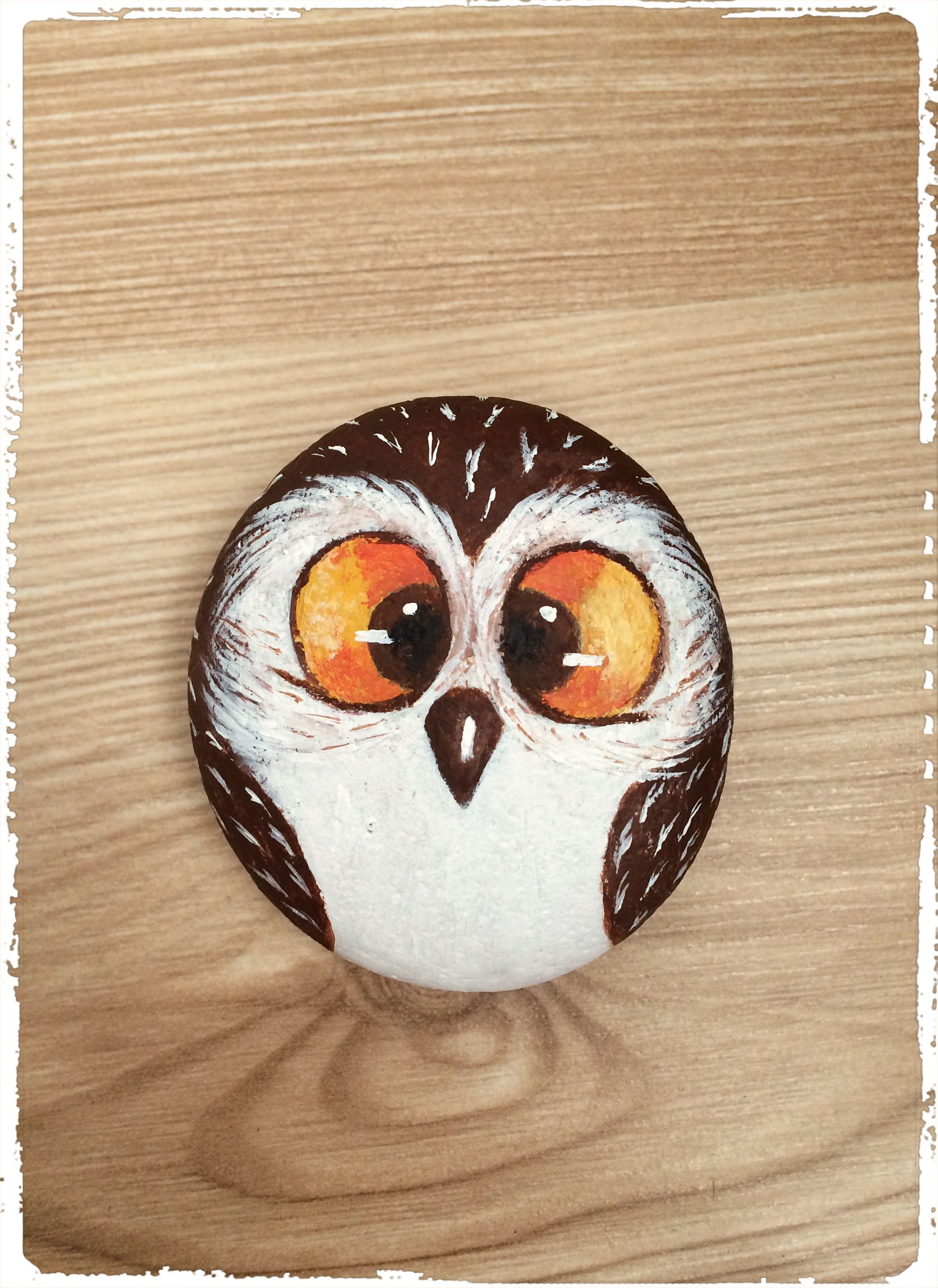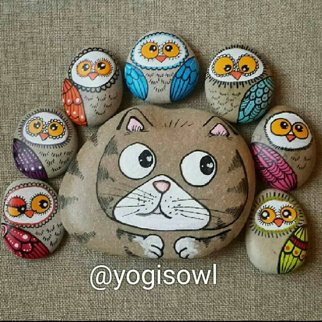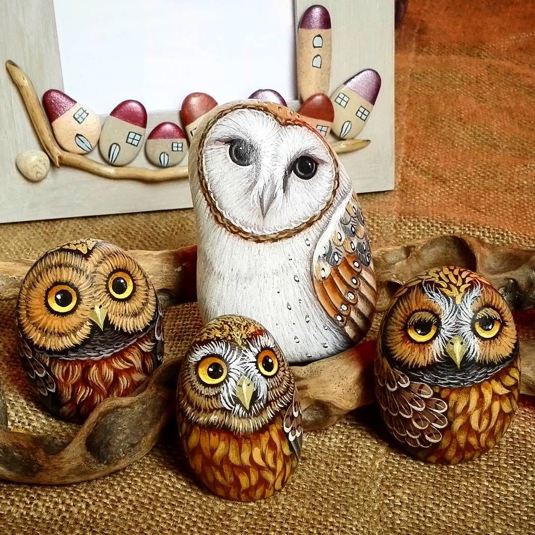 Наскальные рисунки приносят нам столько разных интерпретаций совы. Каждый художник по-своему смотрит на сов, и в этом волшебство галечного искусства.