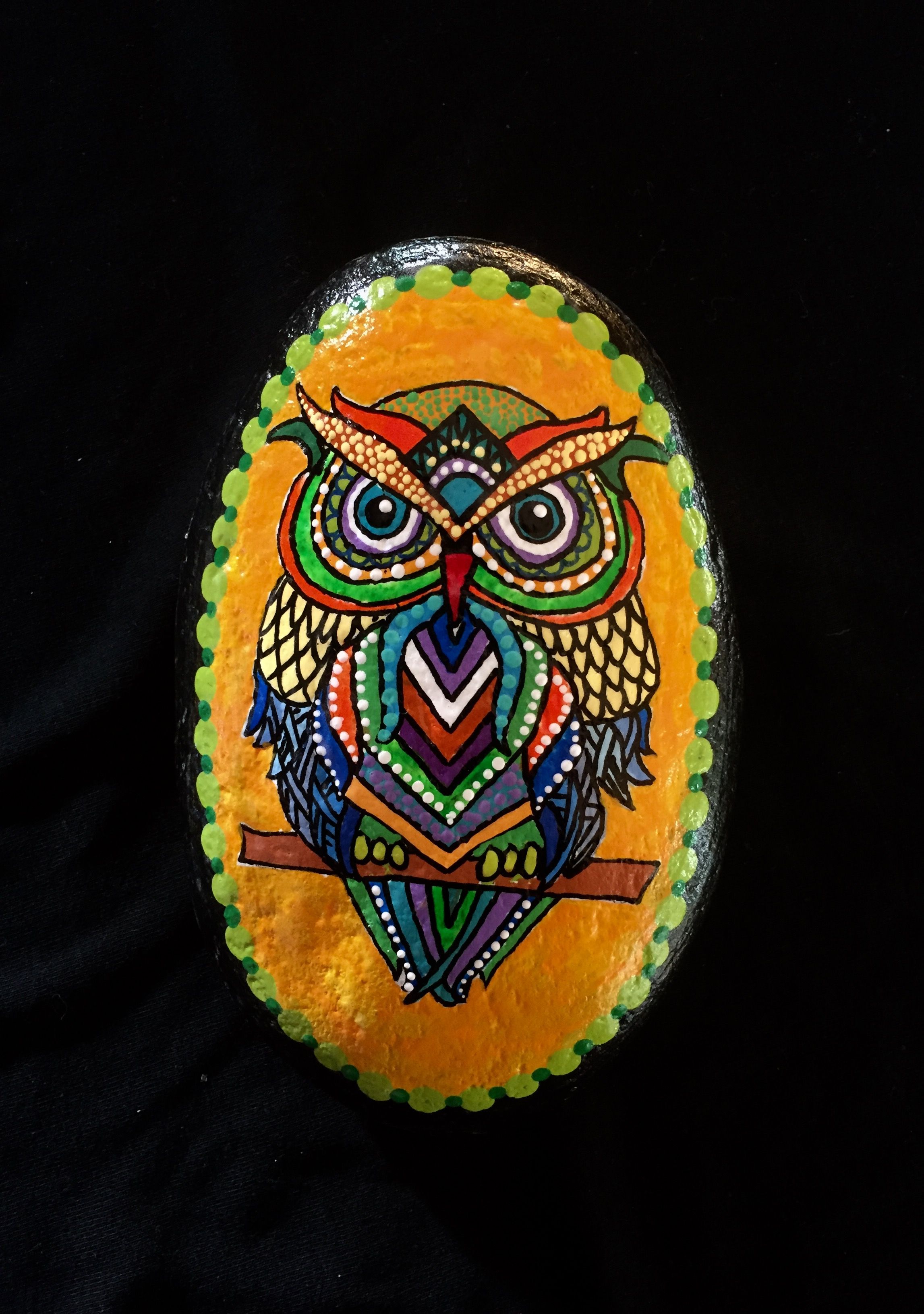 Мы почти можем себе представить, насколько хорошо эти нарисованные абстрактной совой гальки будут выглядеть как пресс-папье. Вы даже можете поместить их в важные документы, потому что их цвета обязательно привлекут ваше внимание.