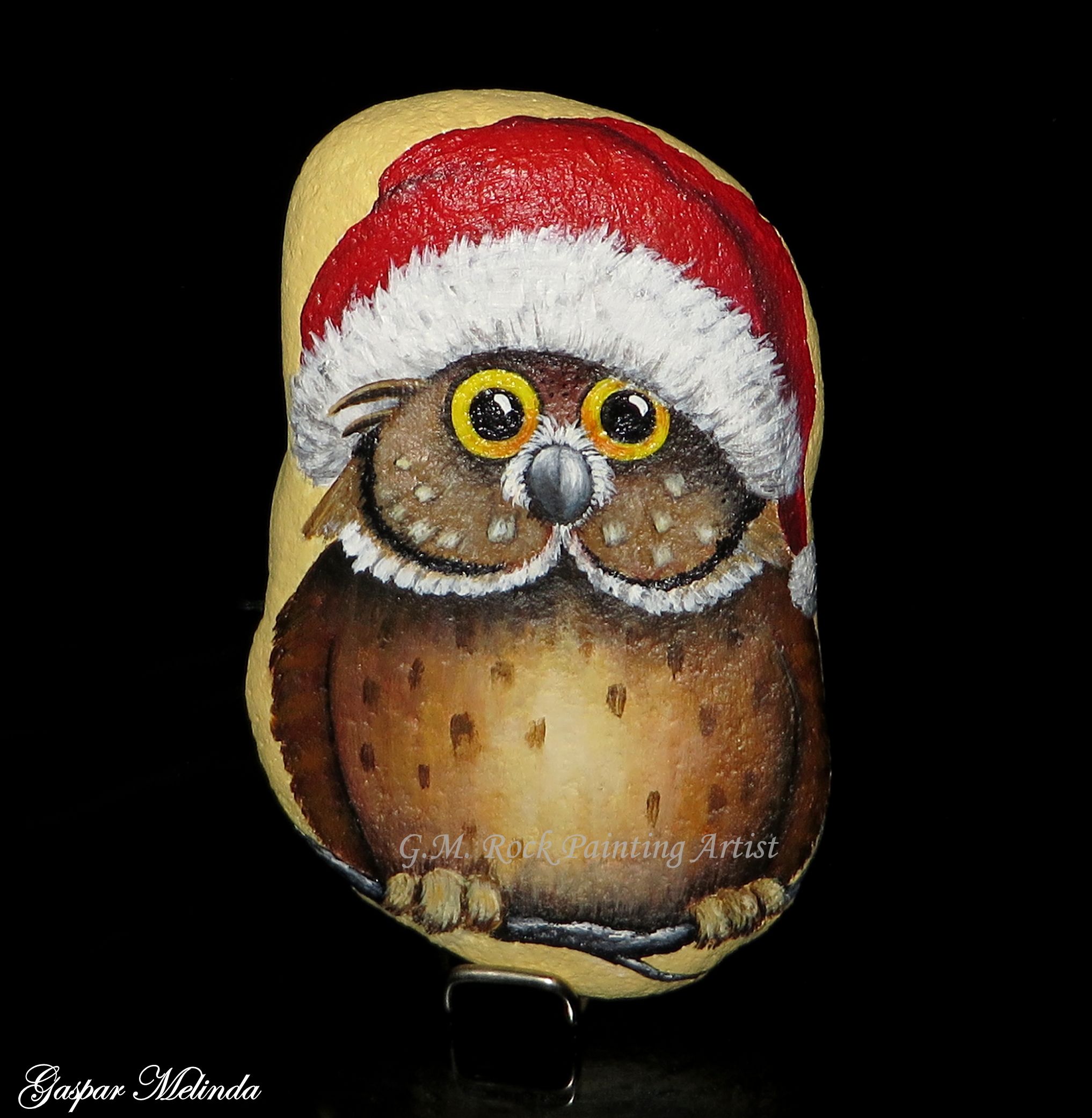 Эта коричневая сова, нарисованная в камне, в шляпе с помпонами – обязательный подарок ко Дню святого Валентина!