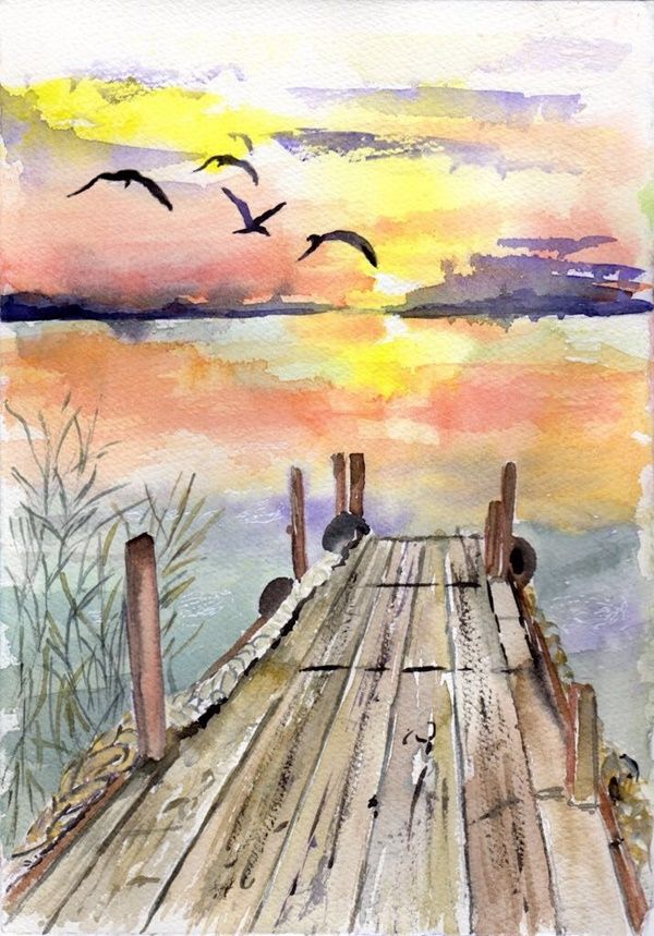 А сейчас попробуем нарисовать пейзаж с помощью акварели. Композиция, которую мы будем рисовать максимально проста, а работать с красками вам наверняка понравится. Начинаем: