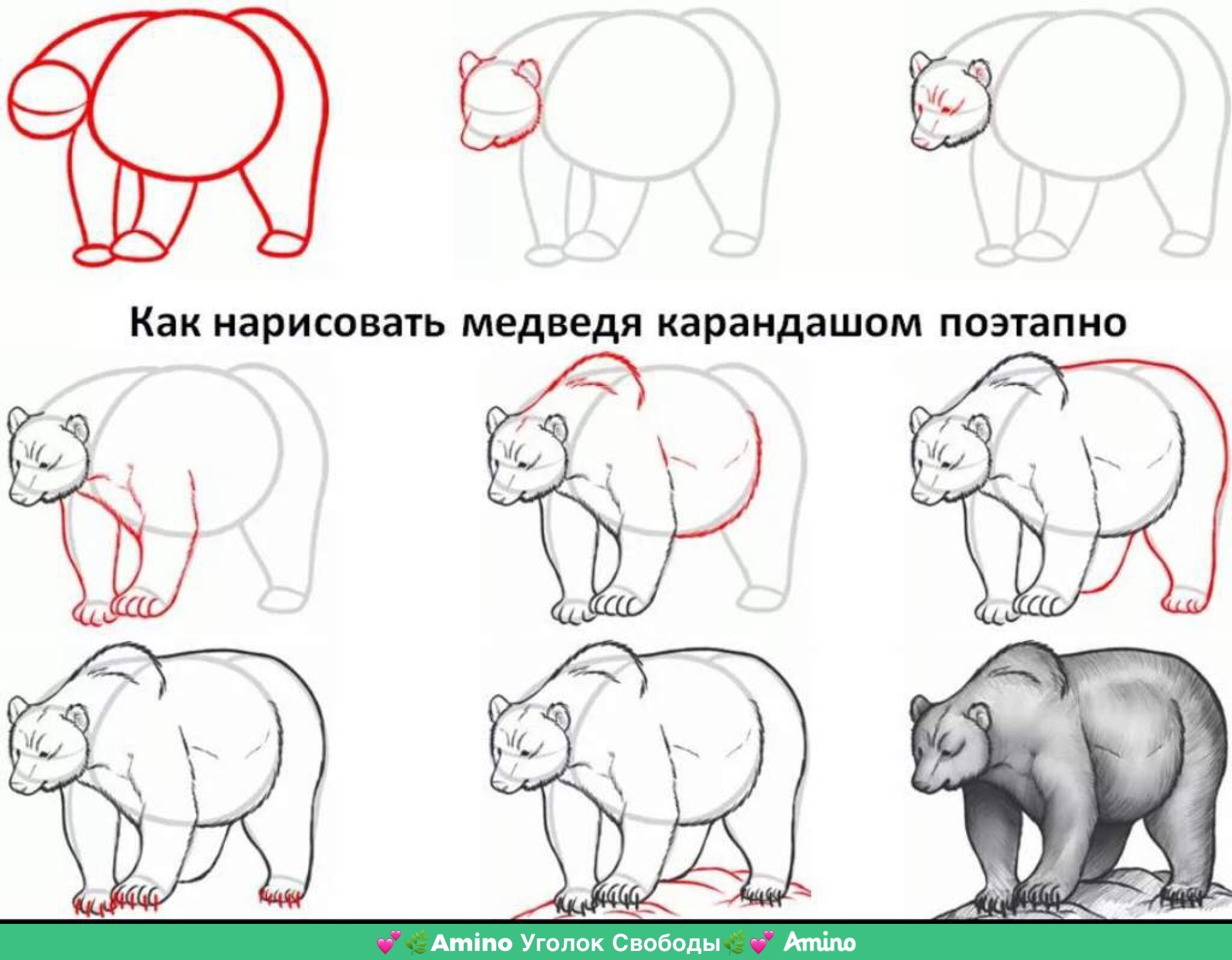 Инструкции как легко нарисовать медведя!Следуйте этому простому пошаговому руководству, и вы быстро нарисуете медведя!