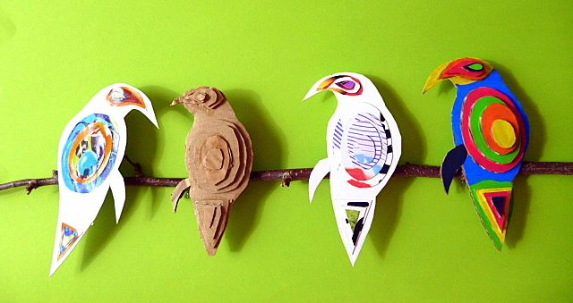 Кроме того, покажите им птиц @marymakingart и укажите на детали, такие как точки и методы нанесения меток.