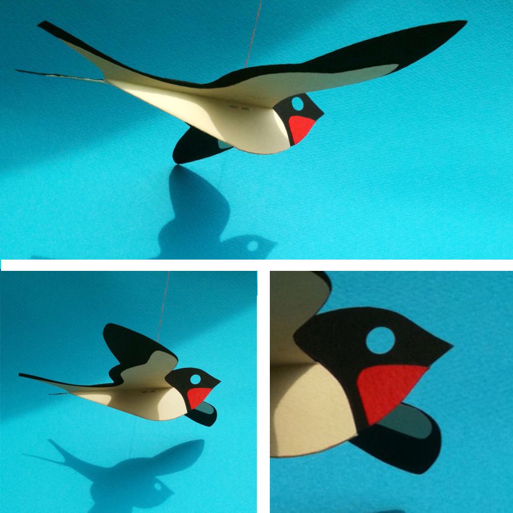 4. Затем приклеим готовые глазки и клюв. Ласточка готова!