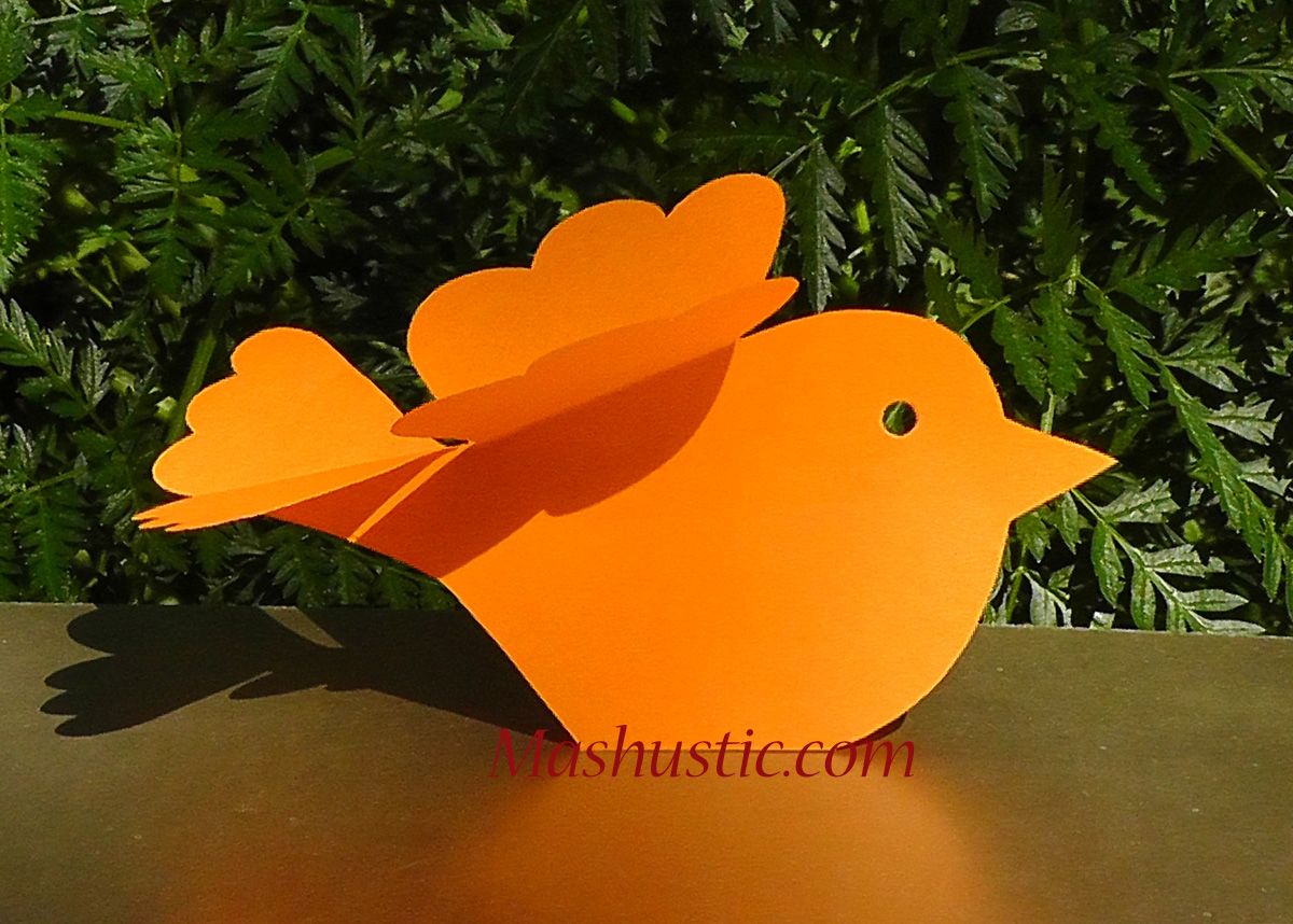 Самый простой вариант по созданию птички своими руками – сделать её из бумаги.