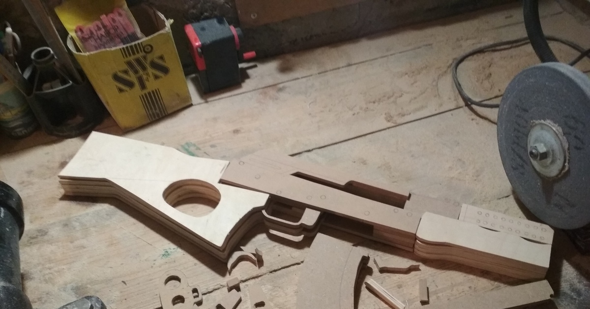 Ручка от лопаты, кстати превратилась позже в приклад и на удивление довольно удобный.