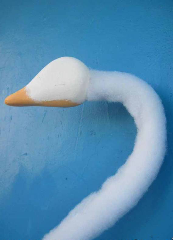 В свою очередь, по ним крепится уже толстая проволока. Нужно отрезать ее моток не менее 1,5 м. Нижнюю часть фиксируем с внутренней стороны основания шеи, верхнюю – на верхней части головы.Вот практически и все, наш лебедь почти готов. Осталось немного: