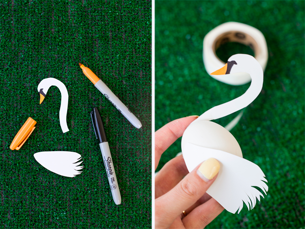 Пластиковые бутылки можно оставить прозрачными, но если у вас есть время, то лучше покрыть их белой краской – тогда лебедь будет казаться живым.
