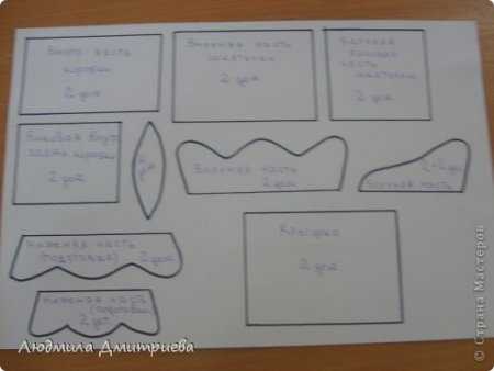 Процесс сшивания идет по следующему принципу: для начала сшиваются сразу четыре заготовки – ножки, затем донышко и низ обеих боковин – внутренней и наружной. Затем пришиваем внутренние боковинки с боков, а потом уже верхние края наружных и внутренних боков. Для начинающих лучше пришить к донышку внутренние боковины и ножки, а потом уже наружные боковины.