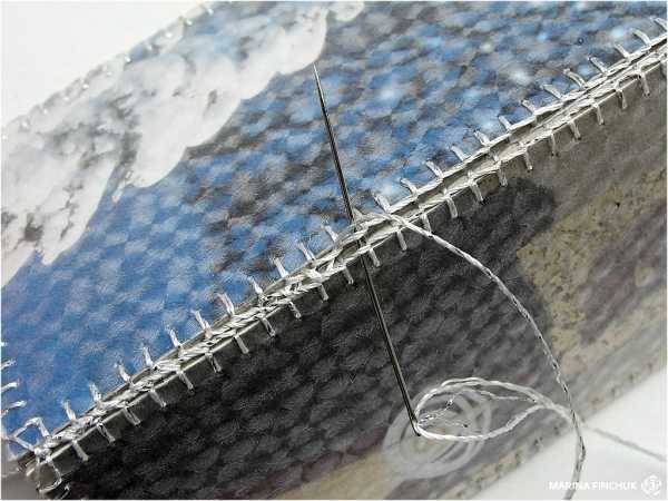 Над крышкой проделываю те же манипуляции: проставление меток, прокалывание дырок, шитье. Затем ее пришиваю к самой шкатулке.