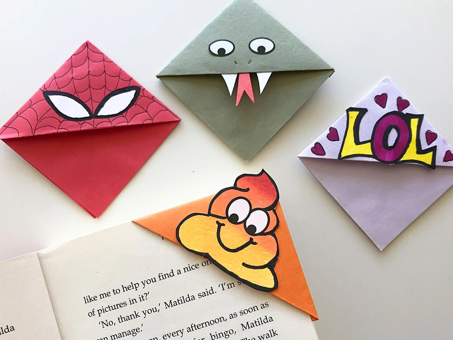 Теперь я скажу вам, что вам нужно: картонная бумага с разными узорами, обычная белая бумага для рисования зубов и гуглилых глаз. Начните с создания обычной треугольной угловой закладки, как упоминалось в закладке для усов в предыдущем проекте, но только из бумаги с рисунком, а затем приклейте на нее глаза и зубы.Для получения подробных пошаговых инструкций по , как сделать закладку , обратитесь к этому руководству.