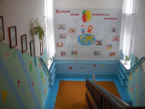 Это стена коридора к яселькам. Рисунки сделаны на потолочных плитах.