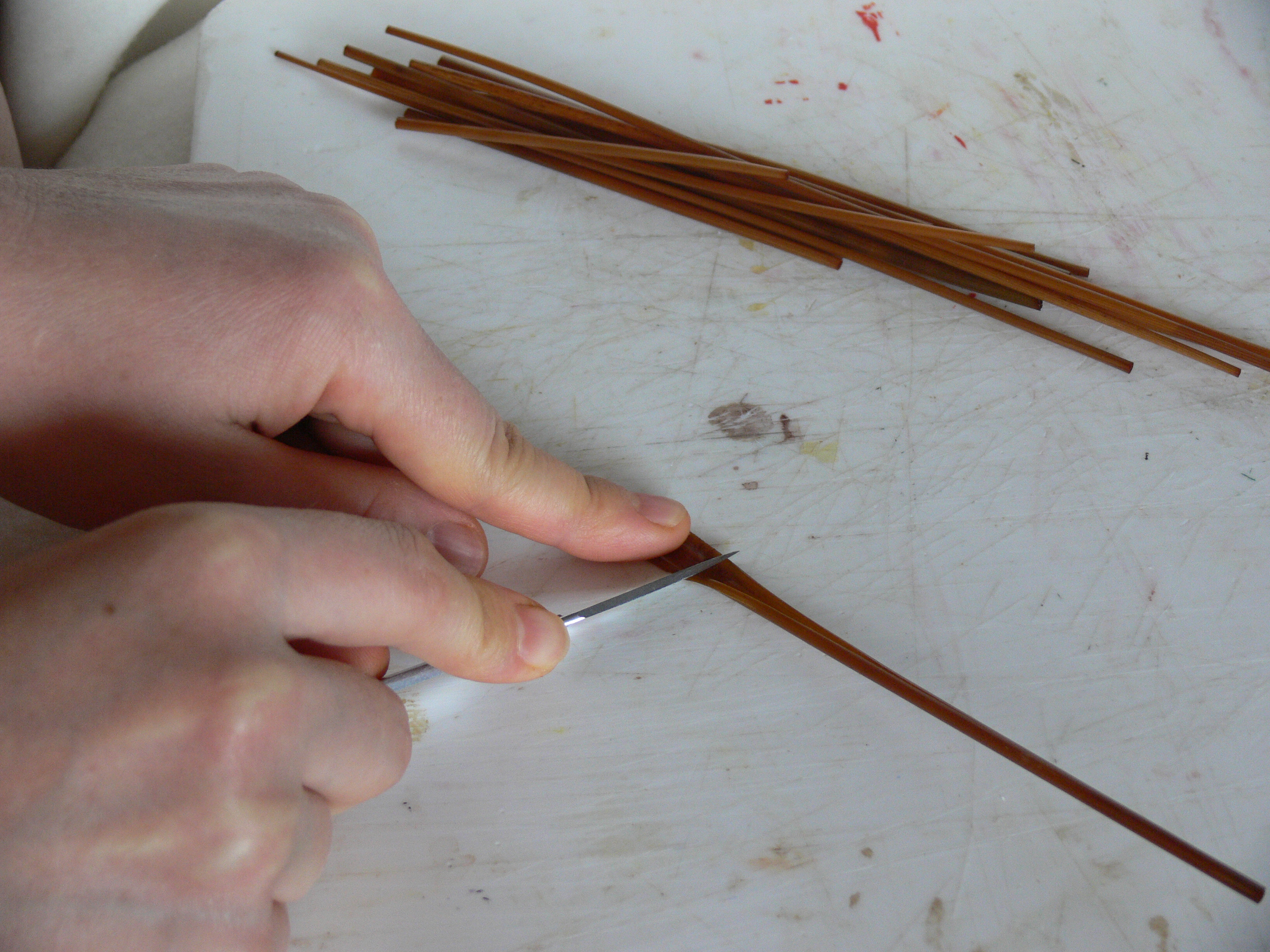 1. Отобрать длинную солому 30-50 см верхнее колено пшеницы или второе колено ржи.