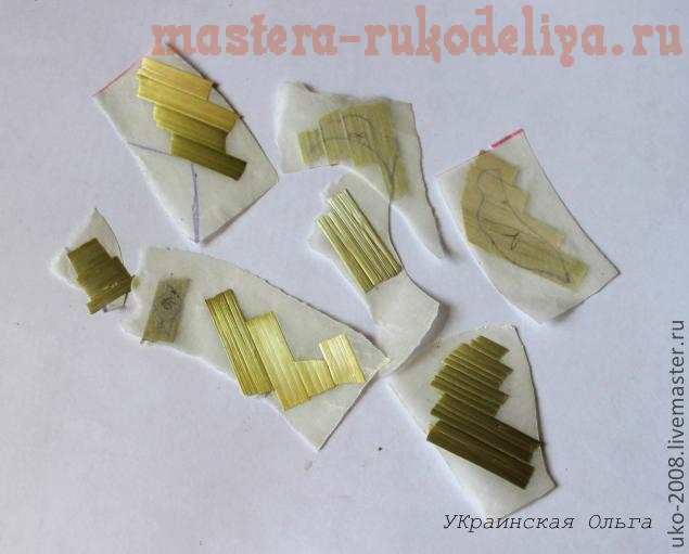 Теперь, когда понятен принцип выполнения аппликации из соломенных «кирпичиков», самое время поинтересоваться, как же наклеиваются…