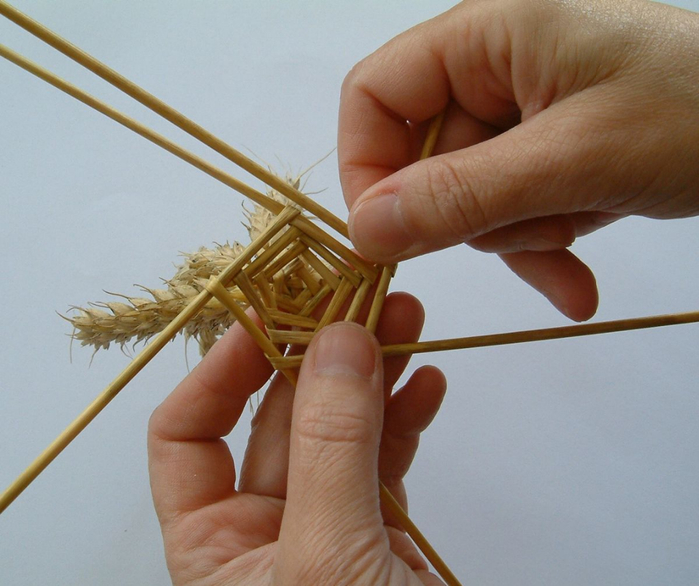 Торчащие соломины загибаются движением назад-к себе-между двумя крайними.Рис.6