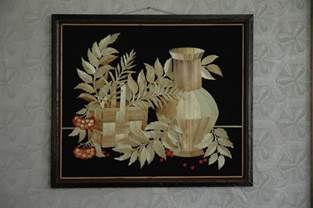 ![]() 1. Рассказ учителя, демонстрация слайдов. История возникновения аппликации из соломки. В декоративно-прикладном искусстве многих народов мира встречаются изделия украшенные узорами, которые составлены из кусочков соломенной ленты. Самые старые из изделий украшенных аппликацией соломкой и хранящиеся в музеях, относятся к 18 - началу 19 веков. В это время стало активно проявляться стремление сельских жителей украсить свой быт декоративными изделиями. Сельские мастера, ориентируясь на изделия профессионального искусства, создавали свои произведения из доступных материалов, придумывая собственные технологии. Свое происхождение искусство аппликации