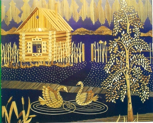 плотной (фанера, древесина, картон, пластмасса). Для выполнения картин-панно необходима соломка разных тонов, несмотря на богатство природных тонов, требуется чисто белая соломка, ярко-желтая, коричневая и т.д. Соломку белого цвета можно получить, если светлую соломку залить кипятком, поставить на огонь и как только вода пожелтеет, слить ее, залить кипятком снова и так сделать 7-8 раз, а в последнюю воду добавить 1 ч. л. уксуса на 1 л. кипятка. Чтобы получить соломки ярко-желтого, лимонного тонов, то во время кипячения надо добавить на 1 л. воды, примерно 1 ч. л. питьевой соды. Коричневые тона разного насыщения можно получить проглаживая соломинки горячим утюгом до нужных оттенков или подтонировать горячим утюгом уже готовые детали в нужных местах по рисунку. Можно получить соломку серебристо-белого