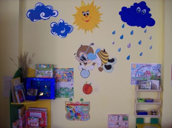 Оформление тематических уголков в групповой комнате детского сада занимается воспитатель, а также наиболее активные представители родительского комитета.