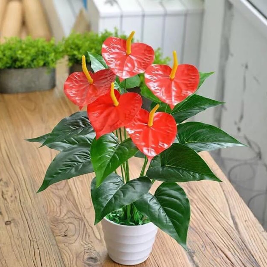 Антуриум имеет красивую зеленую листву в форме сердца, которая выделяет его. Вдобавок ко всему, есть также сердцевидные прицветники или прицветники, которые распускаются вдоль стеблей во множестве ярких и ярких цветов.