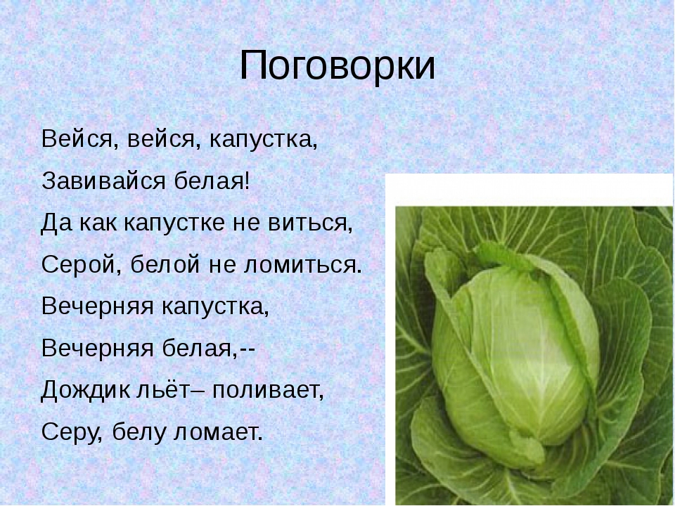 Капуста – одна из древнейших овощных культур, выращиваемых более 4,5 тысяч лет. Капуста высоко ценилась человеком за свои гастрономические качества. О ее происхождении сложено много легенд. Одна из них гласит, что капуста произошла от нескольких капель пота громовержца Юпитера, которые упали на землю. Название овоща произошло от древнего римского слова «капутум», что в переводе означает «голова». В нашем сборнике опубликовано 39 загадок об этом замечательном овоще…