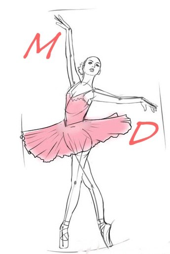 Теперь мы расскажем, как нарисовать балерину. Для новичков этот вариант отлично подойдет, так как на этом изображении не нужно прорисовывать детали лица, каждая из них прорисована всего одной линией.