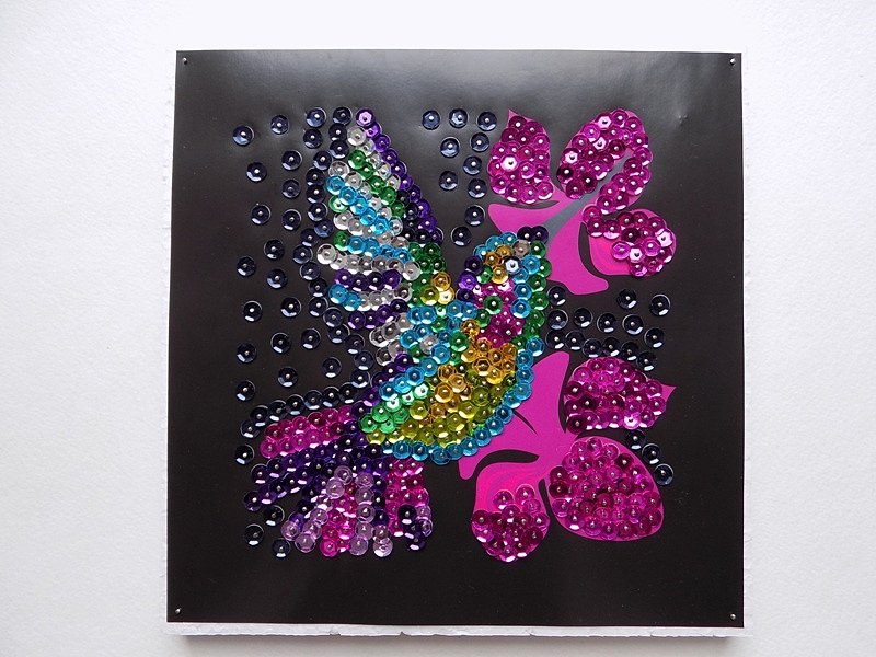 Вот еще одна не большая картина, сделанная из картона с использованием пайеток.