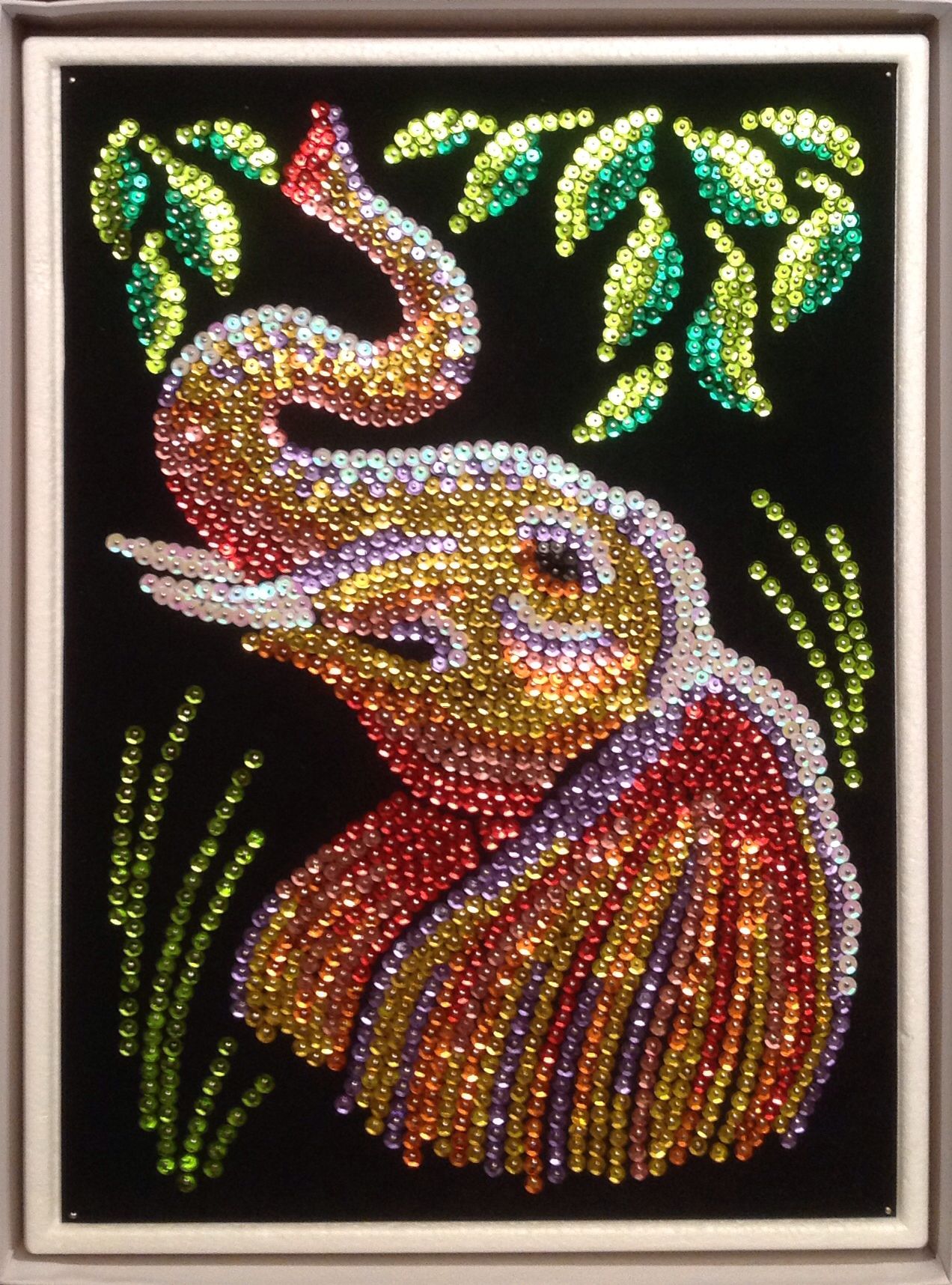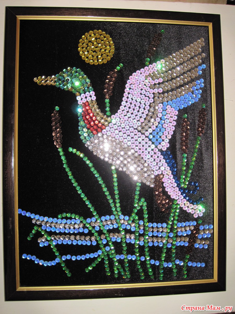 Итак, вы увидели, как создается картина из пайеток. Купите готовый набор для творчества, где есть все необходимое для работы, или приобретите элементы по отдельности и разработайте свой вариант дизайна для интерьерного украшения или модного аксессуара.