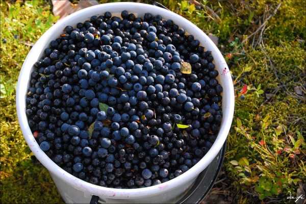 Собирать плоды можно лишь с тех кустиков, которым не больше 15 лет. Дело в том, что в ягодах именно таких кустиков находится самое большое количество лечебных веществ, а именно в них и заключается польза такой культуры. Возраст кустарника растущего в природных условиях можно определить по числу боковых побегов на нем. Собирать ягоду нужно в сухую погоду, причем в утреннее либо вечернее время. Срывать следует лишь абсолютно здоровые, вызревшие и не травмированные плоды, окрас которых должен быть темно-синим, практически черным. Ягоды нужно укладывать в тару из пластика либо в плетеные корзины.